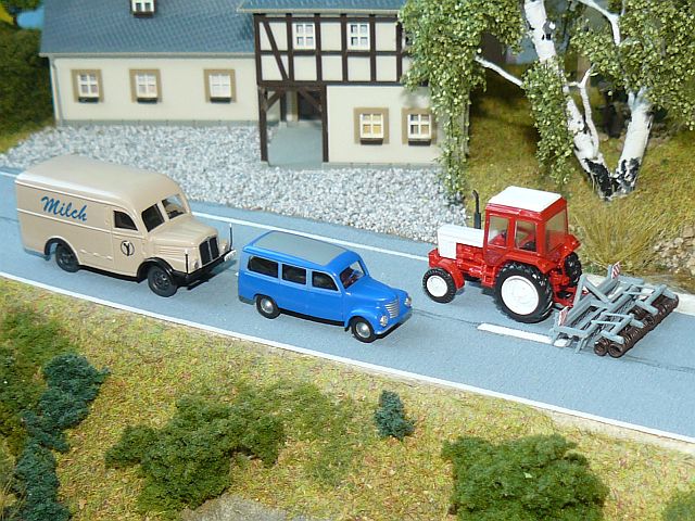 ![]() H3A Kühlkoffer "VEB Molkerei Mühlhausen", Studio ALi Framo V901/2 Kleinbus Busch und Traktor Belarus MTS-570 V&V model mit Heckanbau-Feingrubber B231 MK (Vertrieb über auTTos.de) |