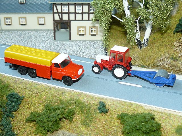 ![]() Tatra 138 CL Diesel-Tankwagen einer LPG Z+Z Exclusive Modell und Traktor Belarus MTS-572 mit V&V model Vibrations-Anhängewalze SVAW 25 SixTTies |