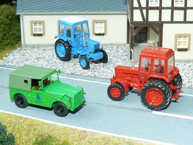 ![]() Traktor Belarus MTS-80 (neue Blinker), Traktor Belarus MTS-82 mit Zwillingsbereifung auf der Hinterachse (neue Blinker) V&V model und IFA P3 Geländewagen des Revierförsters NPE Modellbau |