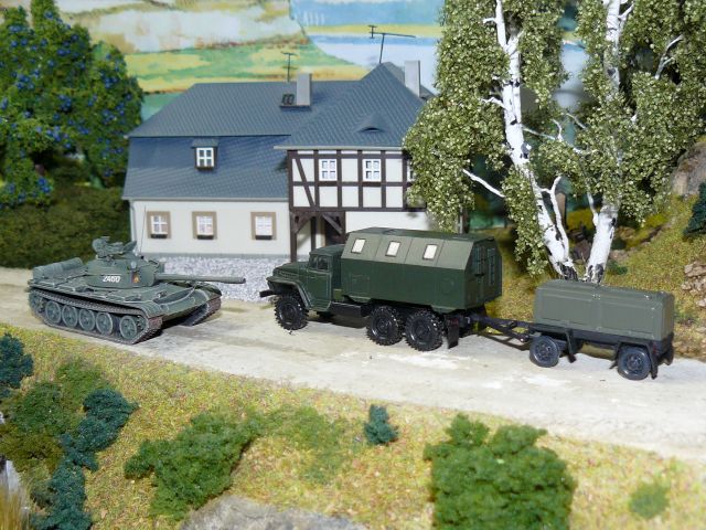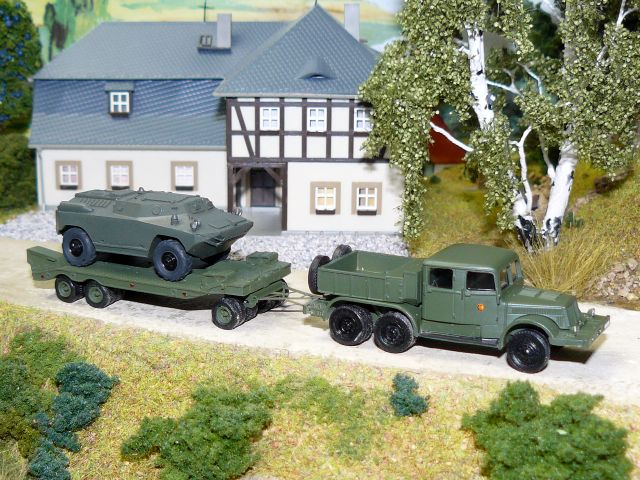 ![]() Führungsstelle R145-BM auf SPW-60PB Bausatz von Hauler gebaut von Peter Behnke Traktor Fortschritt ZT 323-A NVA V&V model mit Tieflader PS-1 NVA R. Kaczynski |