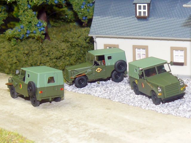 ![]() IFA P3 Kübelwagen der NVA "Fahrschule" und IFA P3 Geländewagen in Ursprungsausführung NVA NPE Modellbau mit Wasch- und Pflegegerät I-8-63 NVA SixTTies |