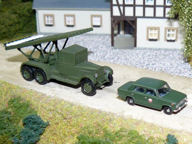 ![]() Mehrfachraketenwerfer "Katjuscha" auf Zis 6 Hersteller ??? und Lada 1200 der GSSD auTTos.de |