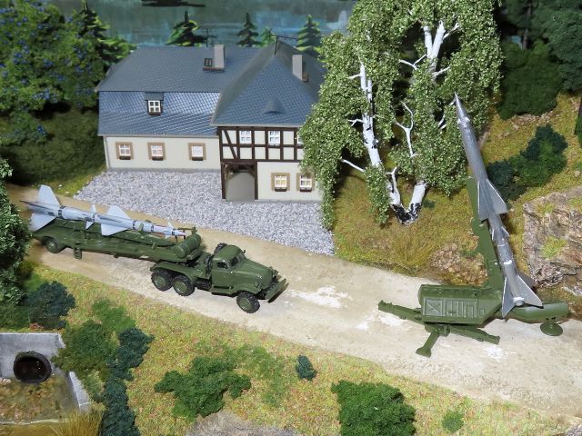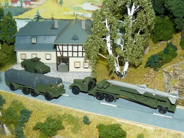 ![]() SPW-40P2 Startfahrzeug 9P148 (2x PALR 9M113 Konkurs u. 3x PALR 9M111-2 Fagott), Zil 135 Raketentransport-Kfz 9T29 (Komplex 9K52 Luna-M) und ZIL 157KW Raketen-Transport-Lade-Kfz PR-11AM (Fla-Raketen-Komplexes "DWINA") NVA TAM |