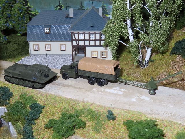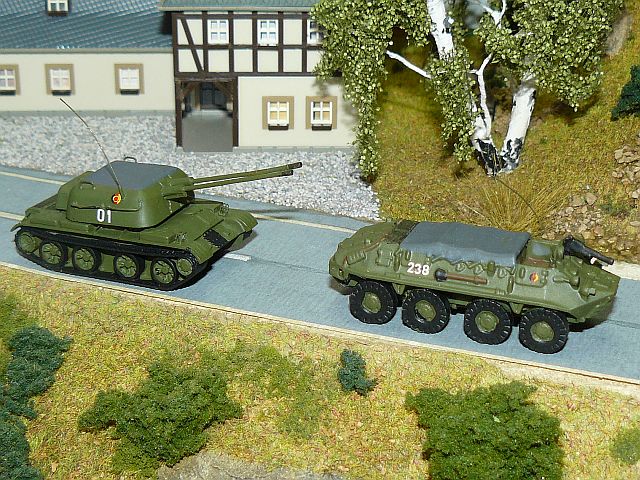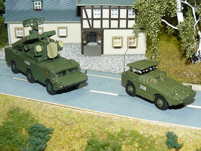 ![]() 57mm Flugabwehr-Selbstfahrlafette ZSU 57-2 NVA sowie Schützenpanzerwagen SPW 60P mit offener Wanne und Plane NVA Bausätze u.a. von panzershop.nl gebaut von Edgar Maas |