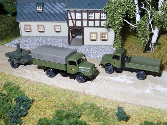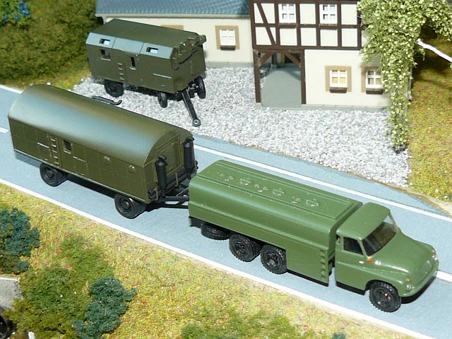 ![]() Feldküche FKÜ 180/72 Hädl Manufaktur Tatra 138 Sattelzugmaschine mit CN22-Tankauflieger NVA Z+Z Exclusive Modell W50 Sattelzugmaschine mit HLS 100.02 Pritsche/Plane-Auflieger NVA TT-Koch |