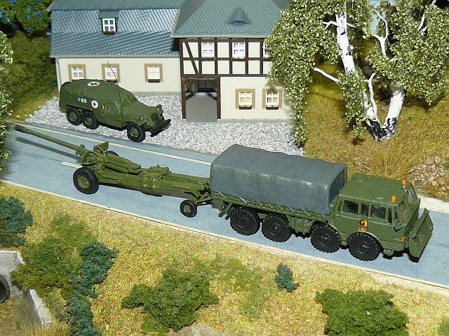 ![]() Sanitäts-Schützenpanzerwagen SPW 152K NVA sowie Tatra 813 mit Schiebeschild und 130-mm-Kanone M-46 NVA Bausätze u.a. von panzershop.nl gebaut von Edgar Maas |
