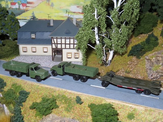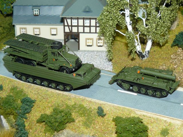 ![]() Schwimmwagen PTS-M NVA mit schwerer mechanisierter Brücke TMM-3 auf KrAZ 255B NVA und Panzerzugmaschine T-55T NVA Bausätze u.a. von panzershop.nl gebaut von Edgar Maas |
