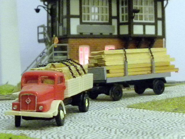![]() H6 Pritsche mit Plattform- anhänger und Holzladung Eigenbau Maik Francke Foto: M. Francke |