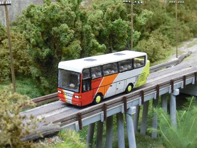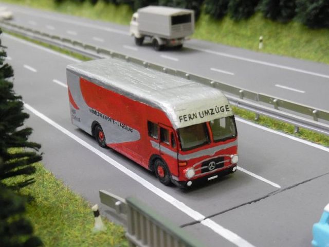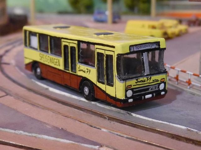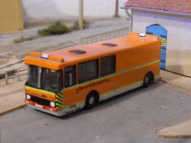 ![]() EOS 80 Midireisebus mit Skikoffer am Heck Eigenbau aus Holz Ulrich Kleinrensing Foto: U. Kleinrensing |