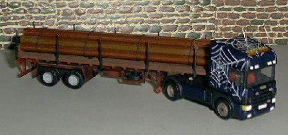 ![]() Scania Pritschensattelzug mit Rohrladung Umbau Roland Eckelmann Foto: R. Eckelmann |